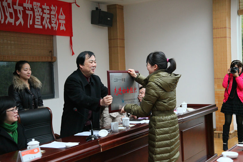 图为集团高副书记为获得2011年度妇联先进集体颁奖