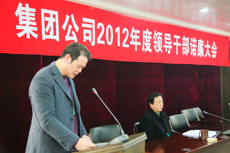 图为集团董事长倪阿泉向干部职工作廉政承诺