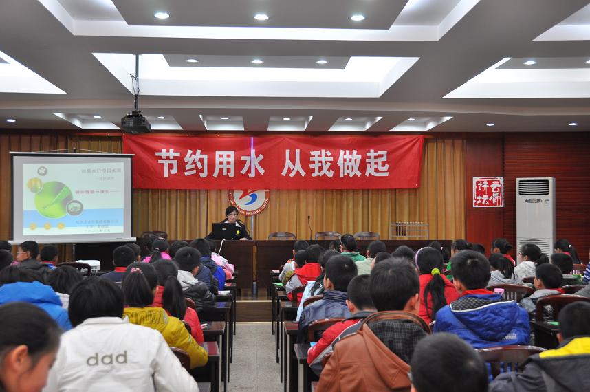 月22至28日是第25届“中国水周”。期间,集团公司联合柯岩中心小学开展以“节约用水,从我做起”为主题的水资源保护和节水教育活动,工作人员通过现场演示、展板宣讲、幻灯片讲课,引导学生们从小认识水污染的危害和节约用水的重要性。
