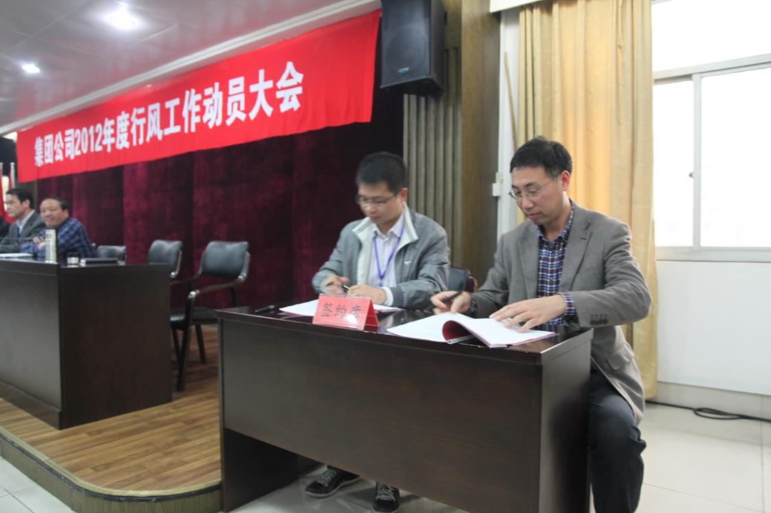 会上,集团公司党委副书记、纪委书记高小林作行风工作动员,他全面总结了去年行风工作所取得的成绩和存在的不足,客观分析了所面临的考验和压力。同时,提出了今年行风建设总体目标和工作要求。随后,集团副总经理冯梁峰与下属各单位、各部室签订了《2012年度行风建设目标管理责任书》。
