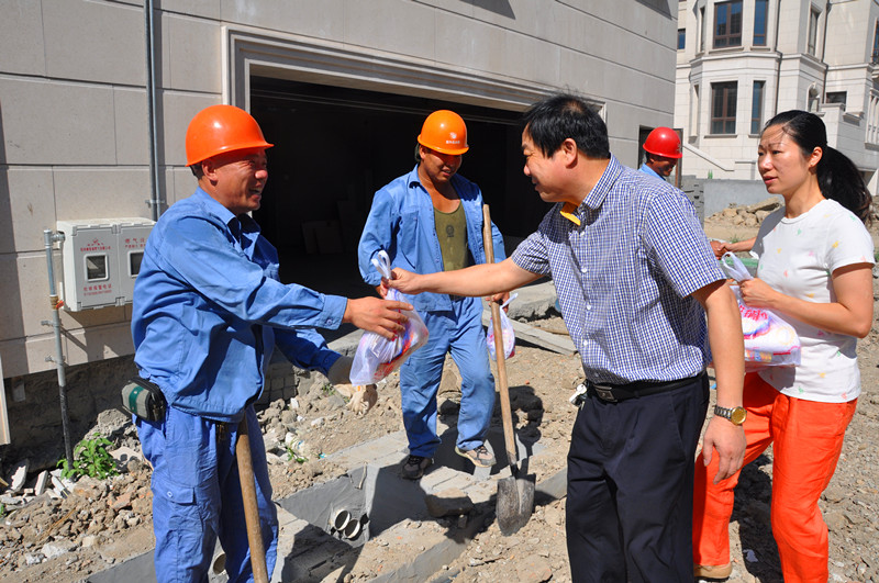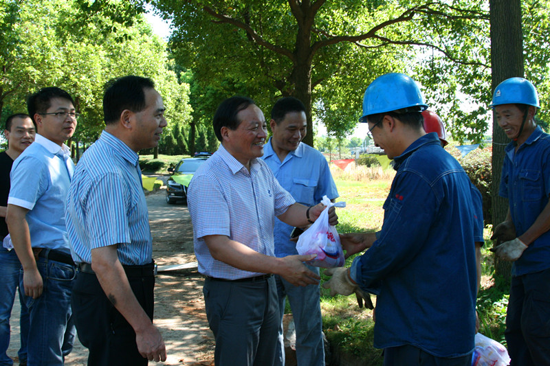 上午,集团董事长倪阿泉、总经理单宝子等领导班子成员兵分三路高温慰问坚守岗位的一线职工,为他们送上了消暑饮料及毛巾等防暑用品,给他们送上一份清凉,捎去一份问候。