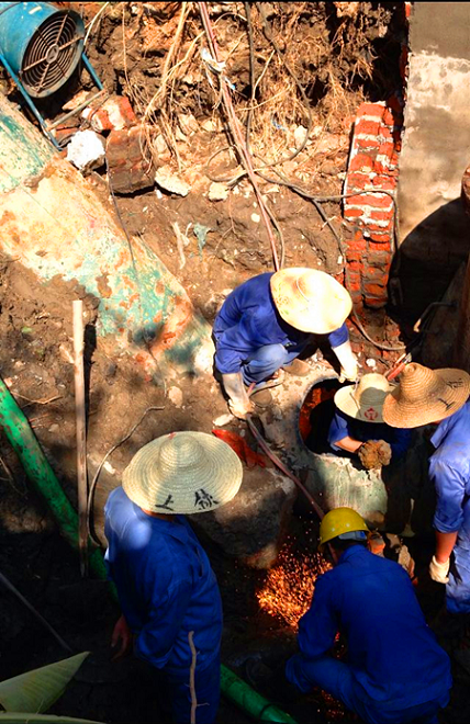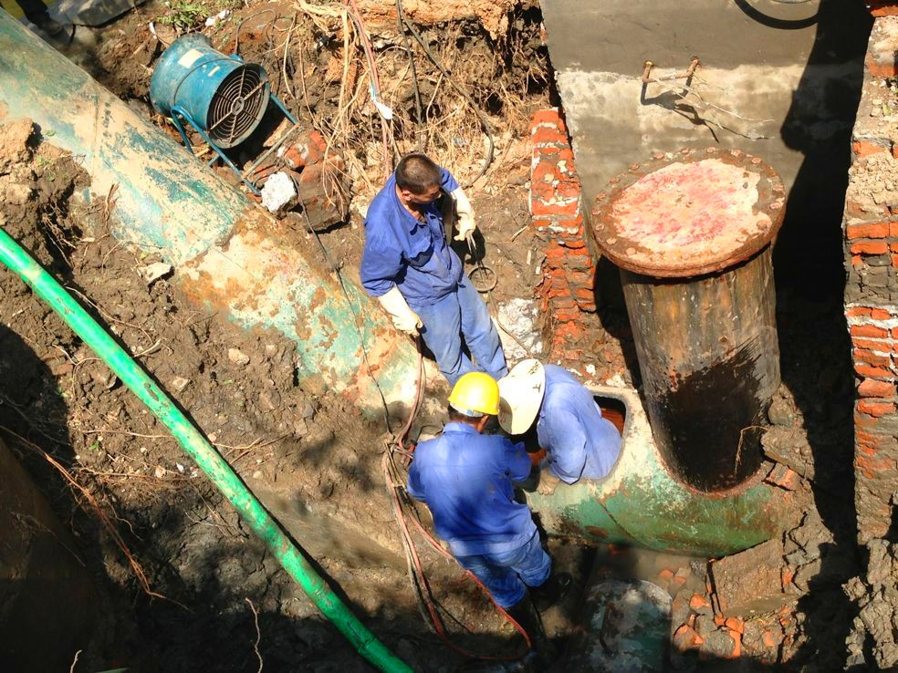 为尽快消除受影响区域的低压现象,确保居民正常用水,供水公司一方面加强供水调度,启动抢修预案,及时发布停水信息;另一方面及时组织人员抢修,关阀、排水、焊接……,抢修人员冒着近40℃的高温,头顶烈日,挥汗如雨,在经过连续4小时不间断抢修作业后,终于在傍晚用水高峰前完成抢修,恢复通水。