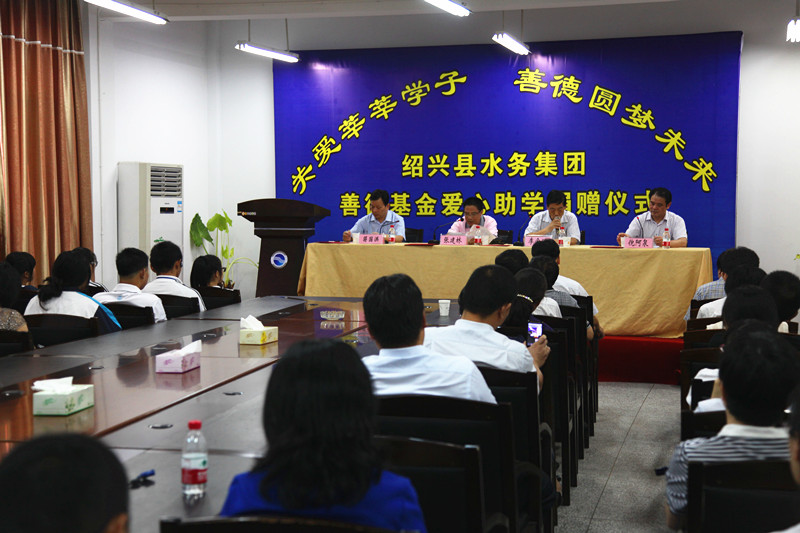 9月23日由县关工委、县教体局和集团共同举办的“关爱莘莘学子、善德圆梦未来”集团善德基金爱心助学捐赠仪式在县职教中心举行。仪式由县关工委副主任张建林主持,县老领导、县关工委主任李会鹏,县教体局局长蒋国洪,集团党委书记、董事长倪阿泉出席,县教体局、县职教中心有关领导及师生代表、集团善德基金员工代表参加。