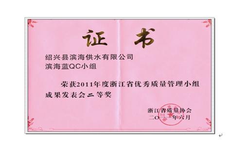 公司滨海蓝QC小组荣获“省优秀QC小组成果二等奖”