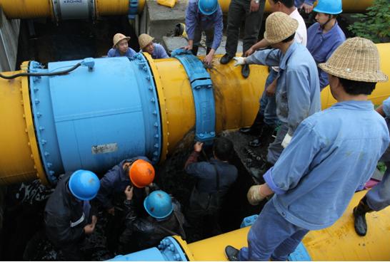 当时,工作人员正在现场巡视,实然发现市排DN800管道流量计后硬性伸缩节渗漏喷水,于是立即按照报告制度进行汇报,该公司立即启动应急预案。抢修分两路展开,一队人员用应急水泵,将渗漏的污水打入生产系统中;另一队人员对渗漏点进行检查,确定是因硬性伸缩节的两颗螺丝膨胀后崩断造成爆管。在通知排水公司对进厂流量进行控制的同时,现场抢修指挥人员立即组织维修人员对硬性伸缩节进行更换。维修人员在采取相关安全措施后,冒着不断喷出的污水,立刻进行拆装螺栓作业。随着水流一点点变小,漏点最终被彻底控制。