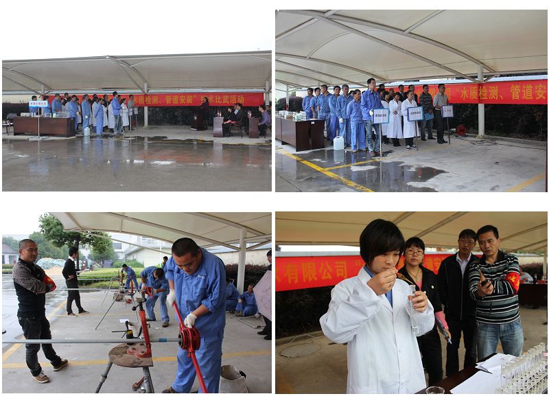 为增强公司员工学技术、练本领的积极性,10月下旬,公司组织开展岗位技能比武活动,比武内容分为水质检测、管道安装两个项目。在管道安装PK赛,参赛员工要在规定时间内用DN20钢塑管安装一个正方形框架,根据施工图纸完成编制料单、切割、套丝、安装等步骤。水质检测则重点考验水质采样、指标检测的操作规范性。经过现场裁判的评分,两个项目各取前三名进行奖励。