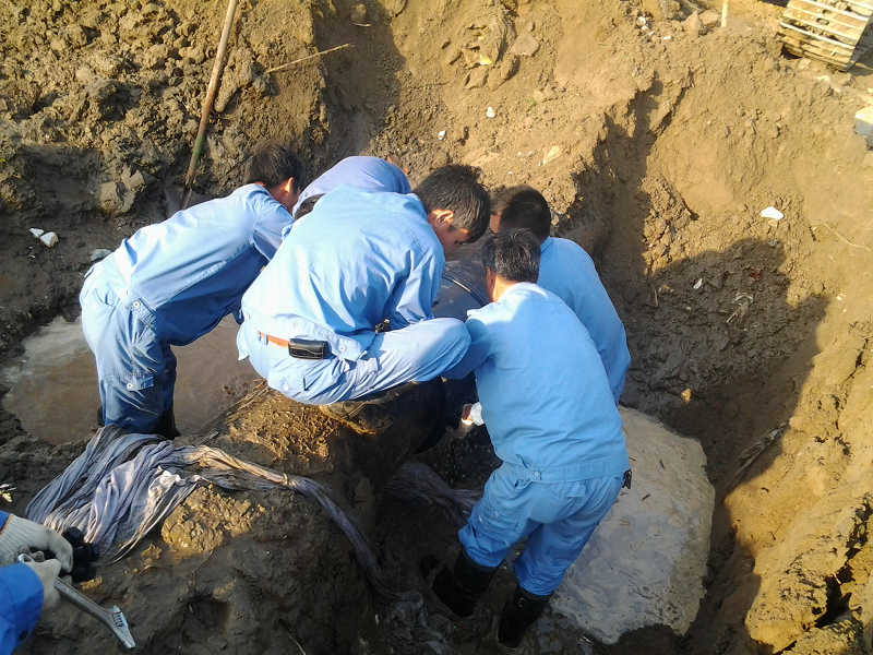 接到报修后,滨海供水公司抢修人员迅速赶赴现场查勘,确定抢修方案,并及时向相关企业发布抢修停水通告。抢修人员当即对设备关闸停水,同时,采取球墨哈夫节封堵技术处理漏点,经过