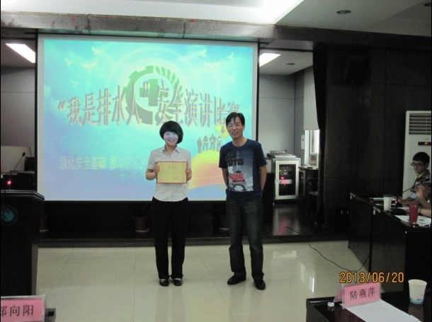 6月20日,“我是排水人” 安全演讲比赛在公司四楼会议室拉开了序幕。来自各部门泵站的15名职工代表以饱满的热情迎接了此次比赛。 参赛选手在讲的同时以PPT为背景为大家展示演讲内容,观点鲜明,立意深刻,语言表达自然流畅,本次比赛结合“我是排水人”主题教育,以“强化安全基础、推动安全发展”为线索,体现了排水人积极向上的精神风貌。最后来自柯海分公司的林佳获得第一名,由郑书记亲自颁奖。