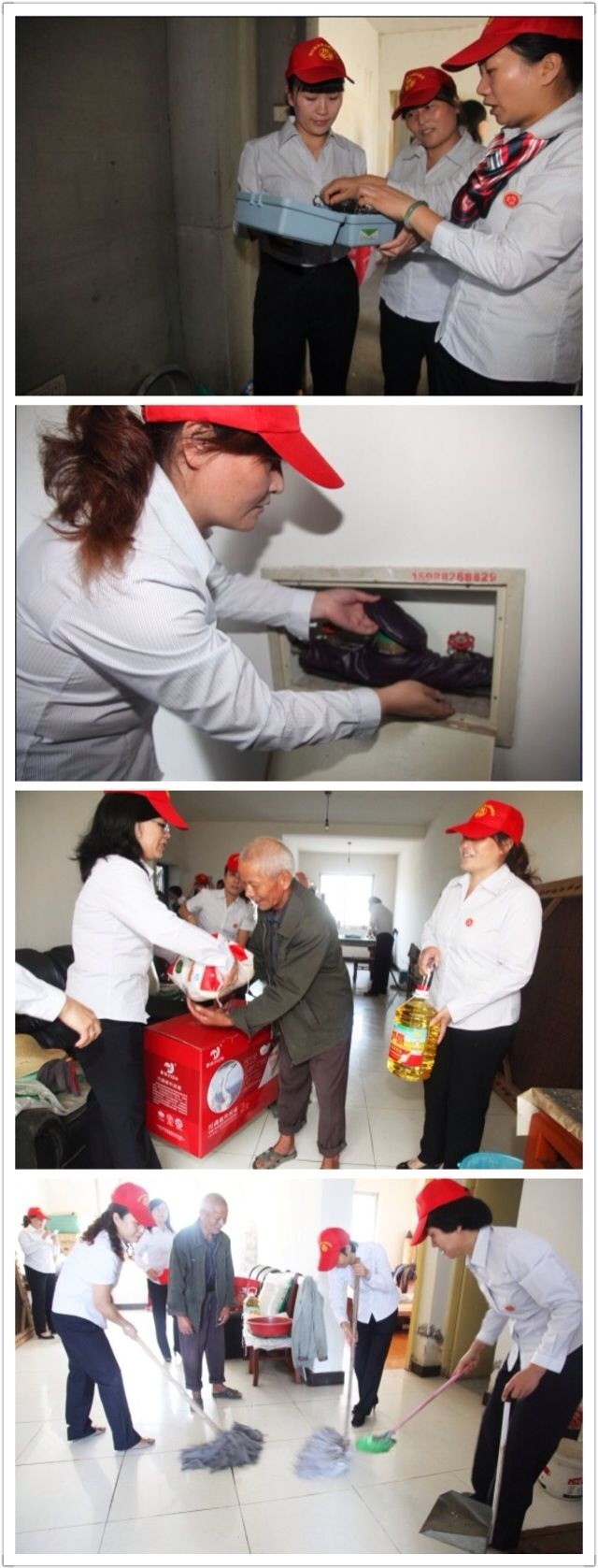 老人,需要我们的关怀,孤寡老人更需要的们关心。10号上午,集团妇联组织8名巾帼志愿者走进双梅居委会,为五名65岁以上的孤寡老人送去温暖与温馨。志愿者们来到老人家中,给他们带去重阳节的慰问品,并为他们打扫家里卫生,水质化验,并做好水表防冻保护。