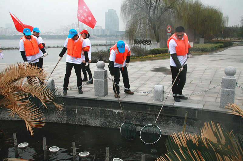 ,开展了以“五水共治,共同参与”为主题的河面清捞活动,志愿者们自带工具,来到瓜渚湖北岸公园,打捞音乐喷泉水面及湖边漂浮物,清理环湖路边垃圾,为改善河湖环境贡献力量。