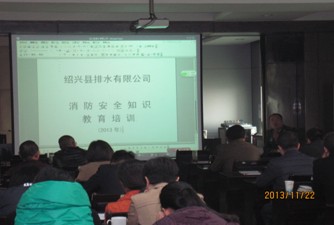 为增强职工的消防安全意识,11月22日,公司特邀柯桥区消防大队参谋长焦志高到公司授课。各部、分公司消防管理人员、安全员共48人参加培训。 会上,焦参谋长详细讲解了消防安全常识二十条,并配合火灾视频短片生动形象的从变配电设备着火扑救、着火逃生、人员救护等三方面讲授消防专业知识。