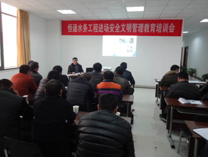为适应当今水务事业发展,有效提升公司工程管理水平,增强全体施工管理人员的安全生产、文明施工意识,本月20日,公司组织开展了工程进场安全文明管理教育培训会。会议由质安部经理主持,公司工程部、质安部全体员工,一类、二类施工班组共42人参加培训。
