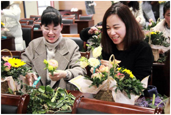 女人遇见花,注定是场美丽的邂逅。3月8日上午,排水公司举行了“庆三八——提升女性修养”为主题的花艺培训活动。活动邀请专业花艺老师给女职工们讲解花艺知识,介绍鲜花保鲜小窍门,传授插花艺术和技巧,集团妇联主席童佳萍特邀出席。活动现场,春意盎然,花香四溢,女职工们跃跃欲试,小试牛刀。康乃馨,向日葵,洋桔梗……在女神们的巧手里焕发出新的生机。鲜花和女神更配哦。