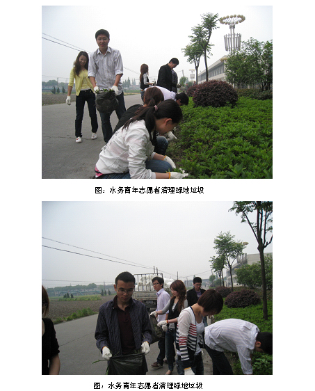 为美化城市环境迎接第六届世界合唱比赛,同时也为“五四”青年节及建团八十八周年献礼,5月8日下午,供水公司团总支组织青年志愿者进行了一场义务劳动,对柯湖路的垃圾进行了清理。