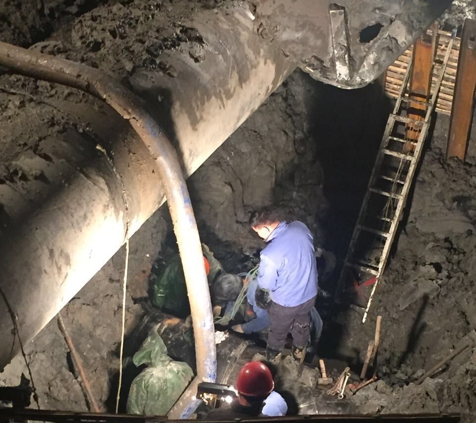 接到抢修电话后,公司相关人员立即赶至现场,并迅速组织抢修队伍投入抢修。关阀门、排水、开挖路面……抢修工作紧张而有序地进行着。冬夜的户外彻骨寒冷,抢修人员虽然已经冻得瑟瑟发抖,满脸布满疲惫,但他们始终咬牙坚持。经过17个小时的艰苦奋战,终于在次日早上7点将漏点修复,恢复正常供水。