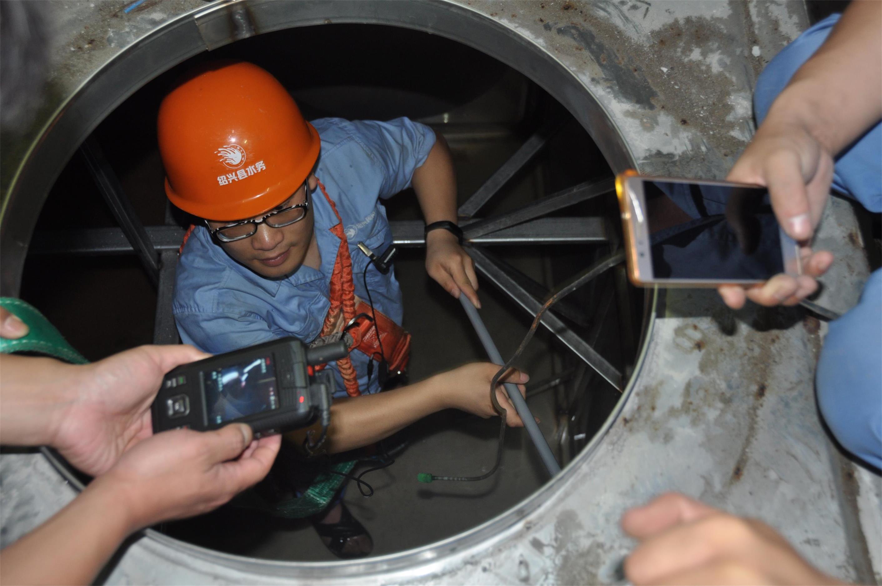 6月20日上午,位于和谐家园小区6幢地下一楼的水箱房内,供水公司工作人员正在对箱式无负压设备水箱进行清洗。