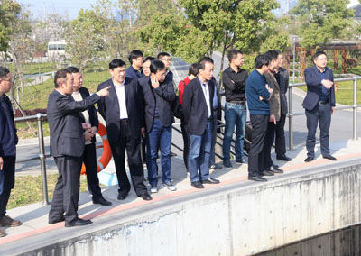 考察组一行实地参观了公司中控室,听取了公司有关污水配套规划建设、工业污水集中收集、污水处理工艺流程等情况介绍,对污泥处置、污水收费等问题进行了深入交流,随后考察组一行实地参观公司生产运行现场,详细了解现代化污水处理流程及设备,考察组对公司处理工艺、环境治理及环保教育等方面给予充分肯定和高度评价。