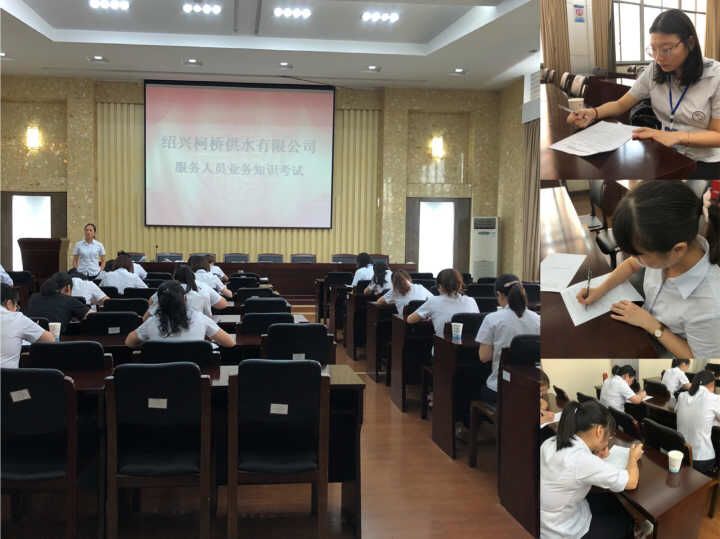 本次考试采用纸质闭卷形式,分填空题、单选题和问答题三种题型,涉及《服务人员行为规范》、《“最多跑一次”改革暨“一窗式”服务实施方案》、《“一窗式”服务指南》、《“柯桥水务”微信公众平台管理办法(试行)》等内容,考试成绩与分级考核挂钩。通过本次考试有效提高了营业大厅服务人员与“96390”客服人员的业务知识水平,进一步严肃了服务纪律,提升了服务效能。